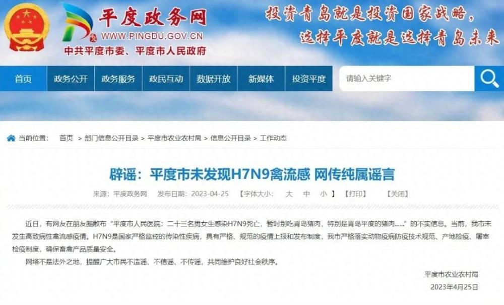 4月25日,平度市人民医院、平度市农业农村局曾发布辟谣声明——