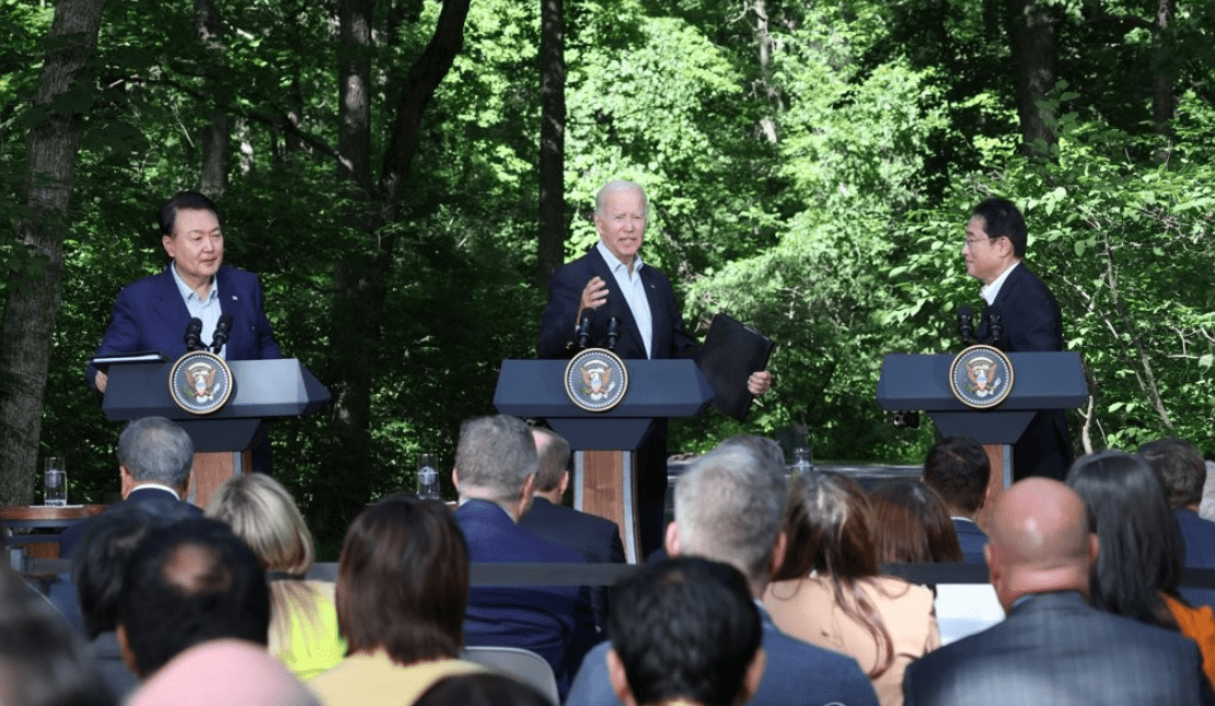 美日韩三国首脑戴维营会议后与记者见面