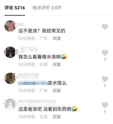 李女士将该视频上传至社交平台后,引发网友热议,有网友称“这是目前看到的最清晰的‘水怪’视频”,也有网友表示“这就是水浪”。
