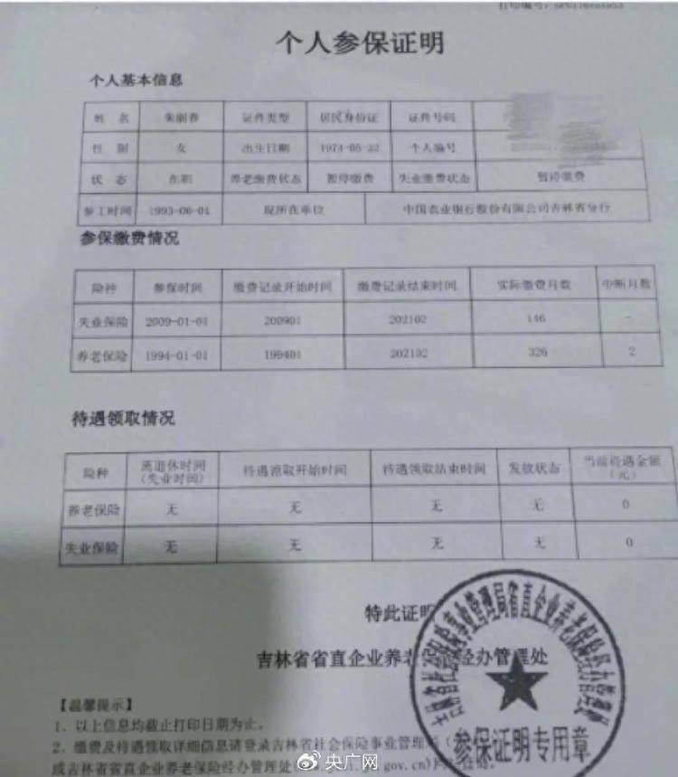 朱丽春查到的“自己”名下的参保情况(央广网发 朱丽春供图)