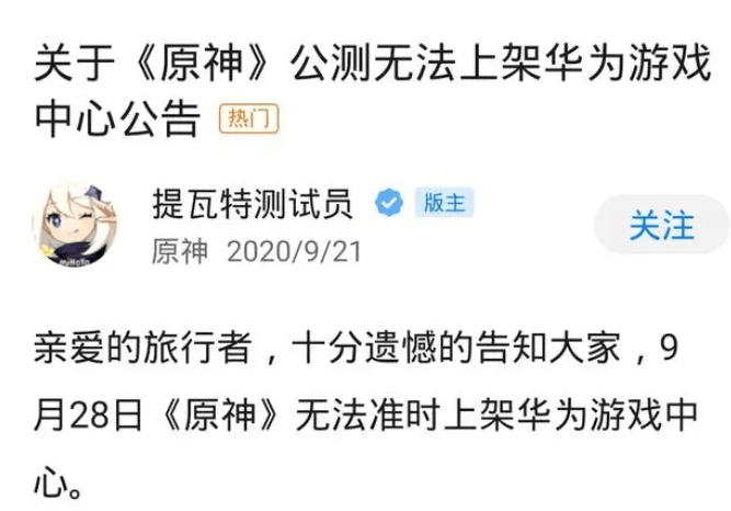 2021年1月1日,华为游戏中心发布公告,「因腾讯游戏于2020年12月31日17点57分单方面就双方合作做出重大变更,导致双方的继续合作产生重大障碍,经过我司法务谨慎评估,我们不得不依照腾讯单方面要求暂停相关合作,将腾讯游戏从华为平台下架。」